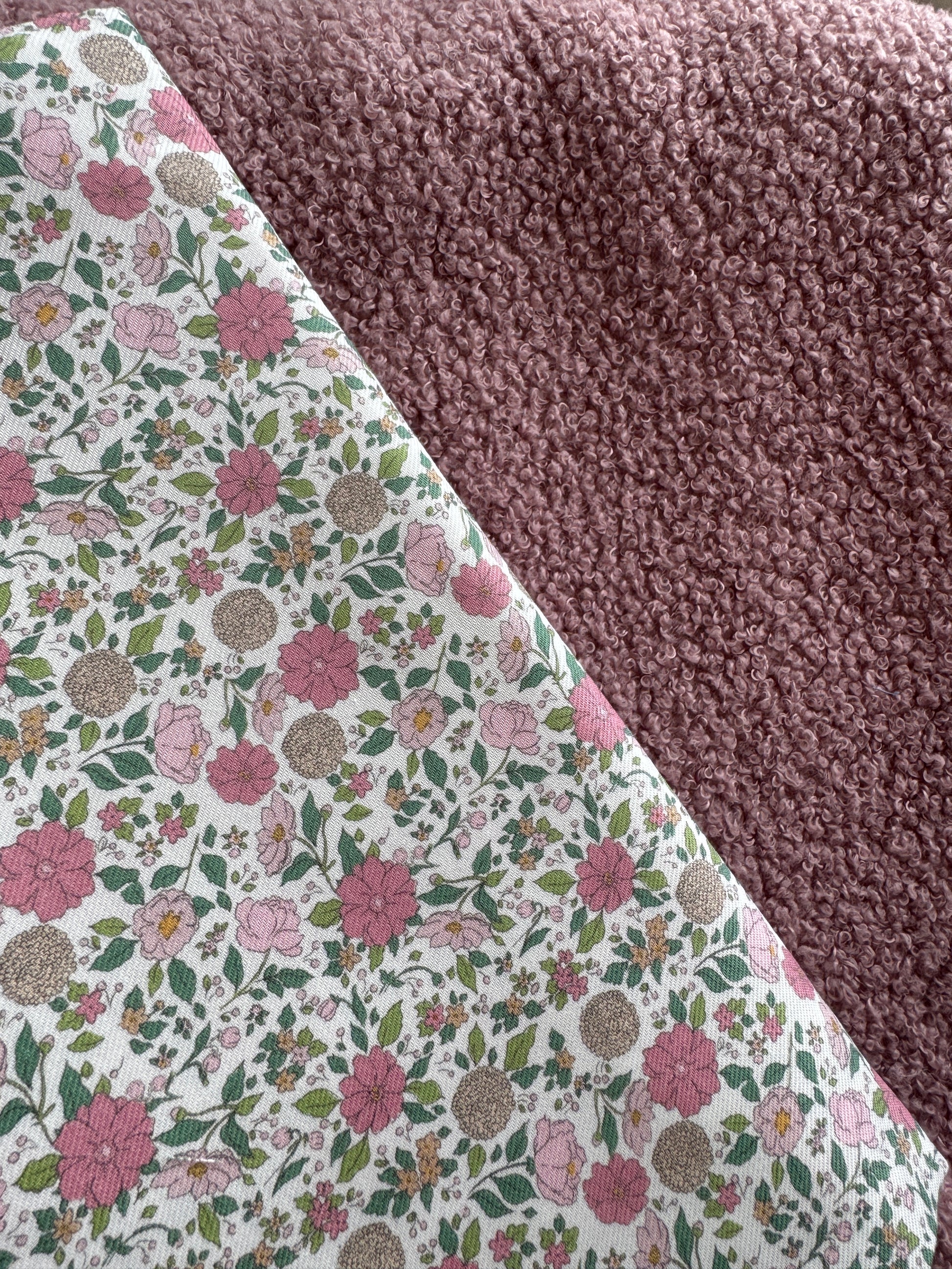Hecho de tela estilo osito de peluche que se siente cálido y reconfortante, y terminado con un lindo detalle de lazo para ese toque extra de encanto.