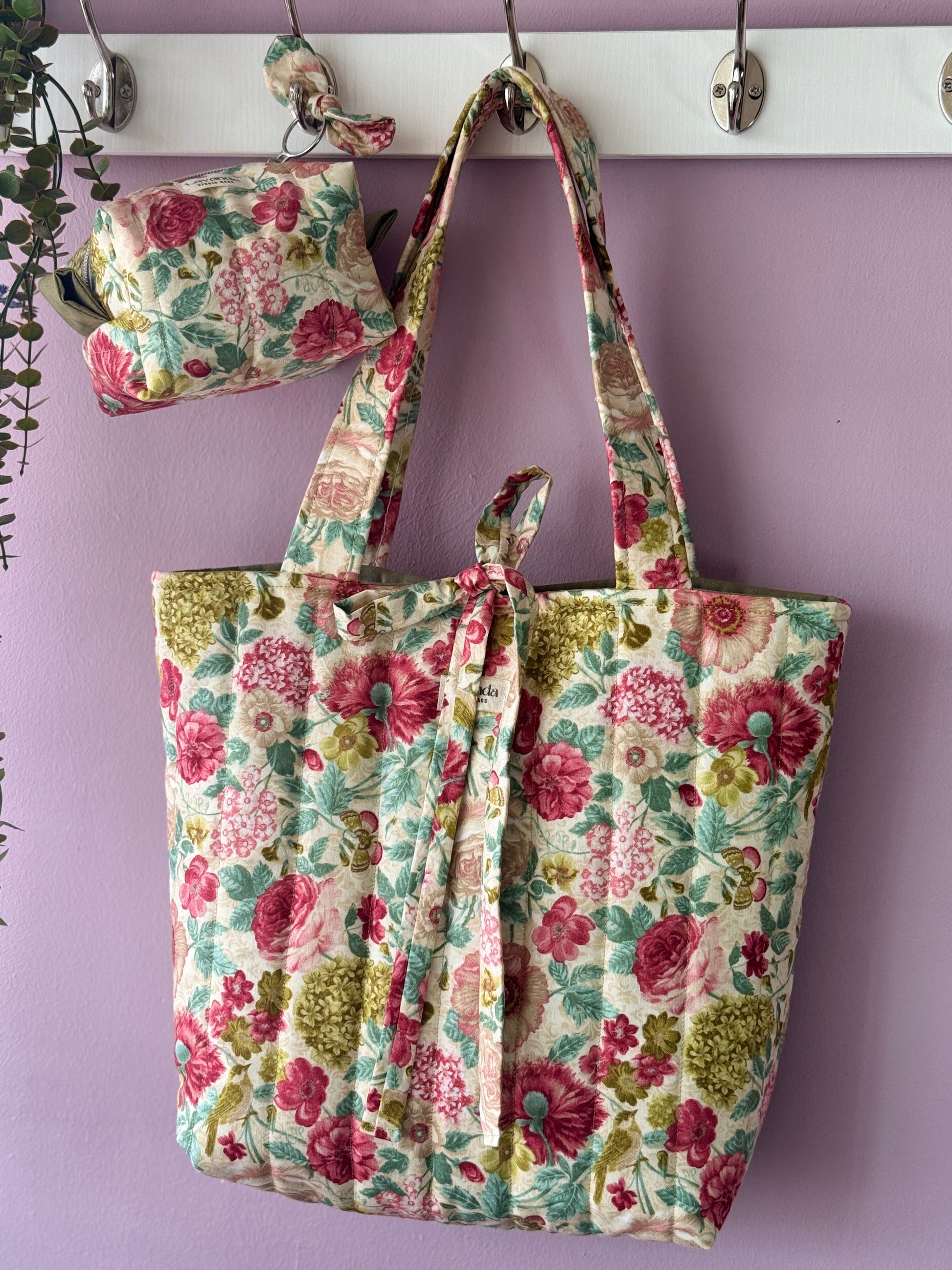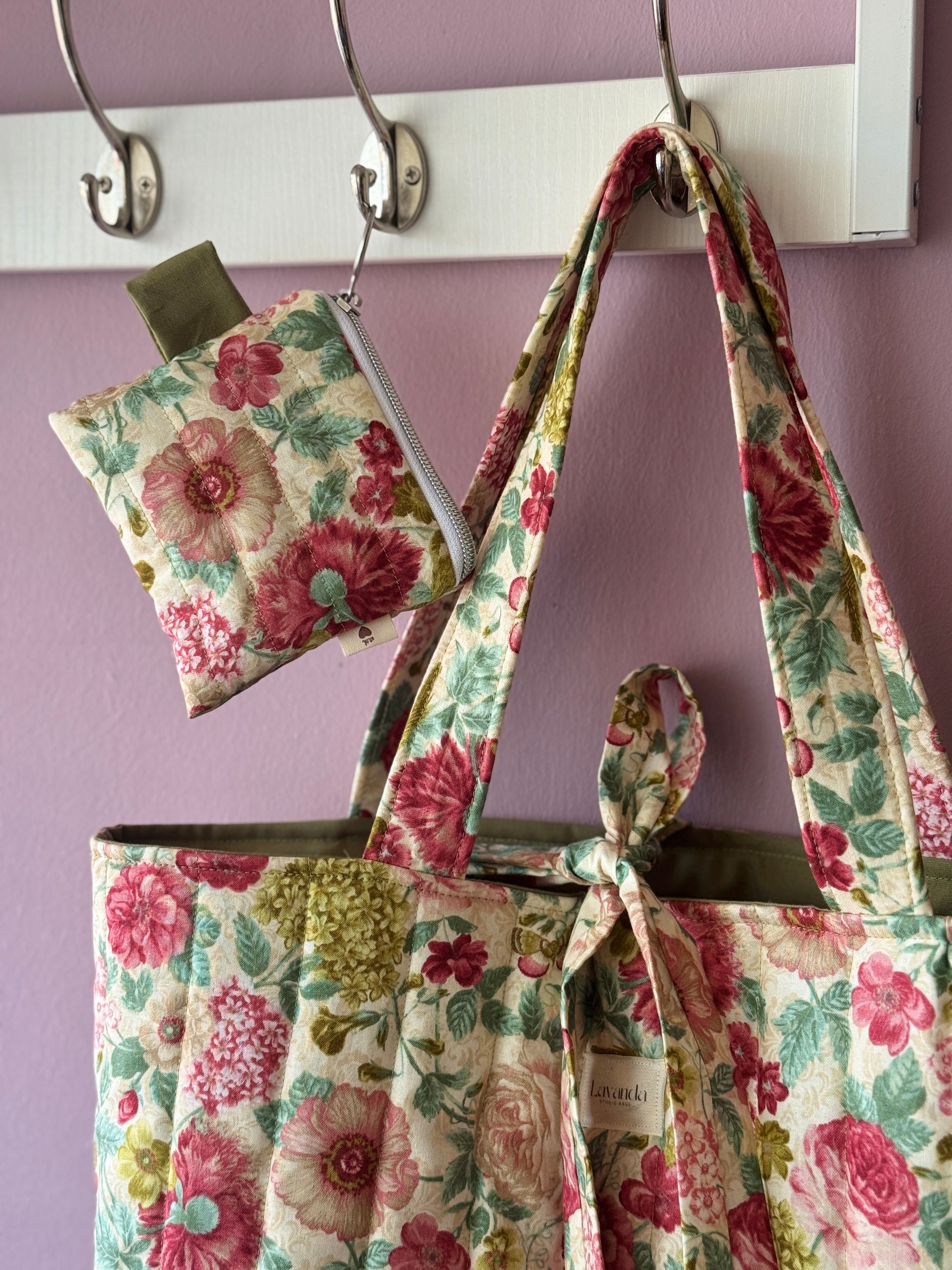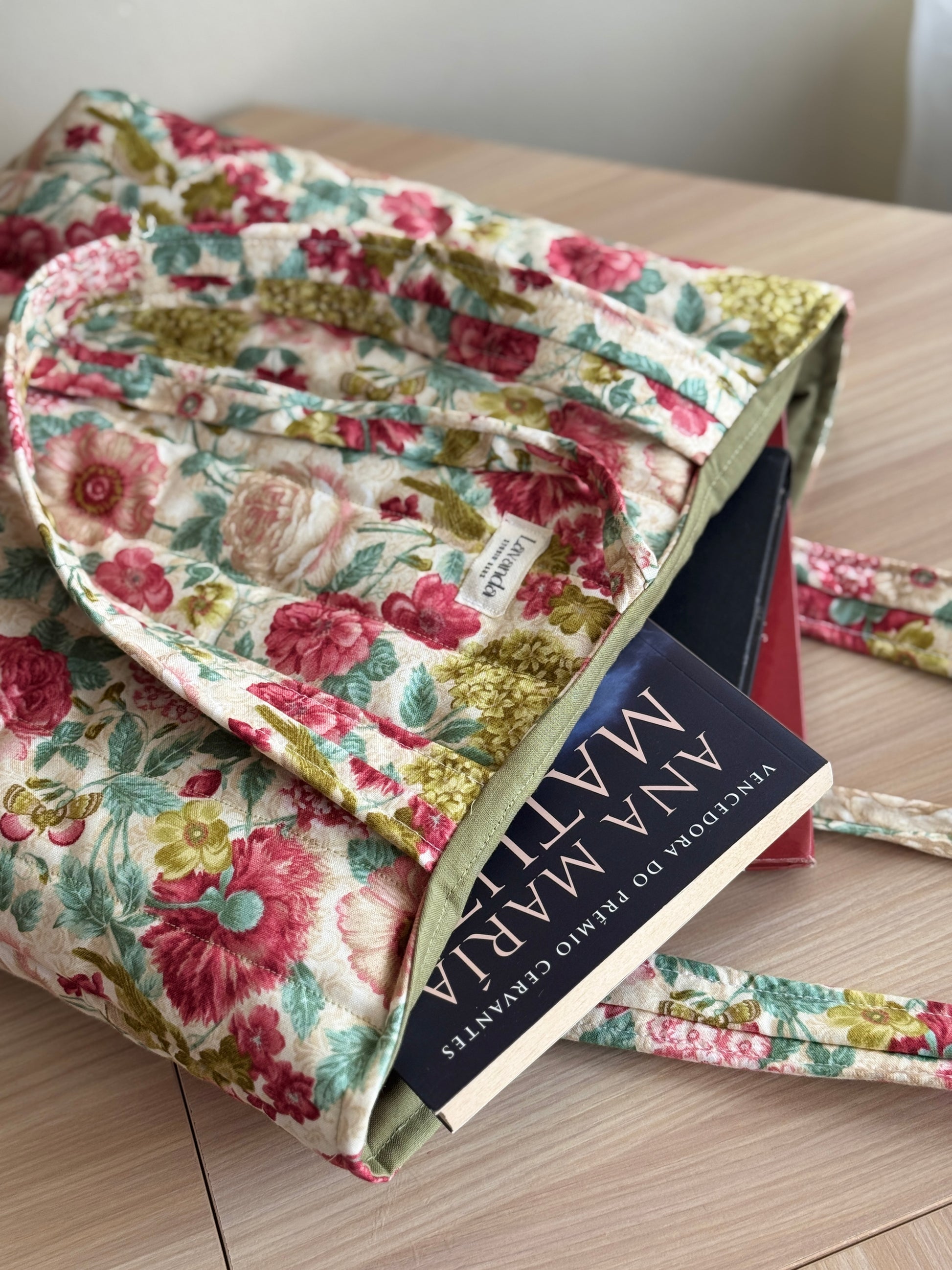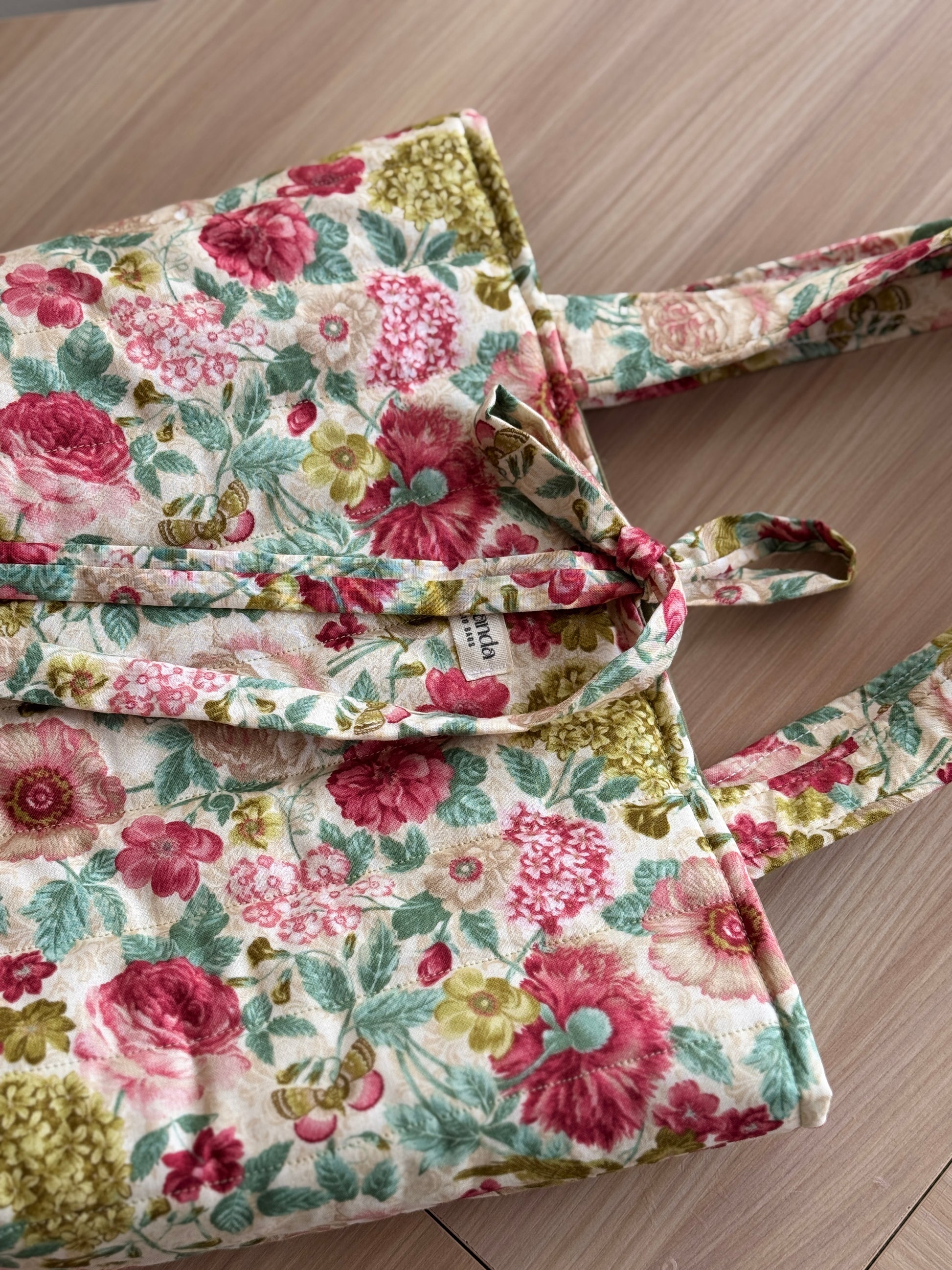Lleva contigo un toque de nostalgia y color con este bolso tote de la colección Jardín de Recuerdos. Su estampado floral, lleno de vida y delicadeza, evoca esos momentos que queremos guardar para siempre: una tarde soleada, el aroma de las flores, la calidez de los detalles hechos a mano.