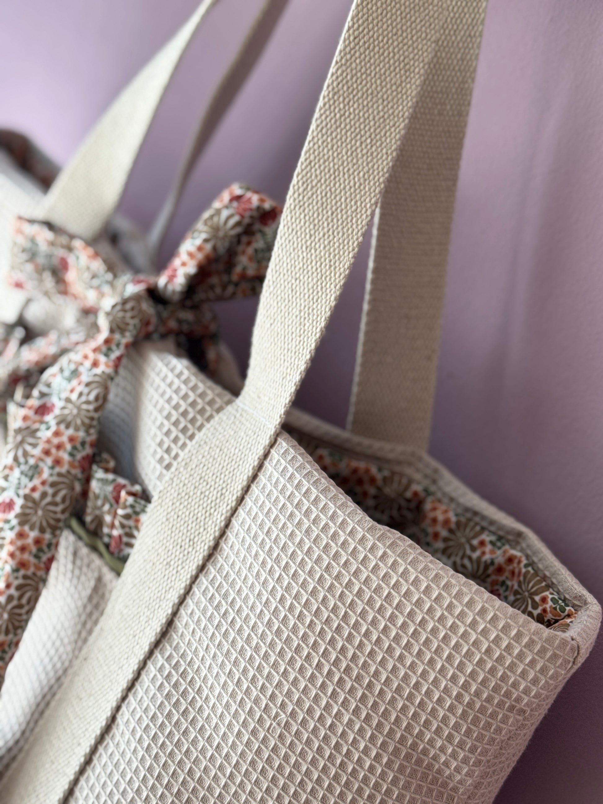 A.Tote bag beige waffle autumn(custom bag) Available to make within 15 business days.