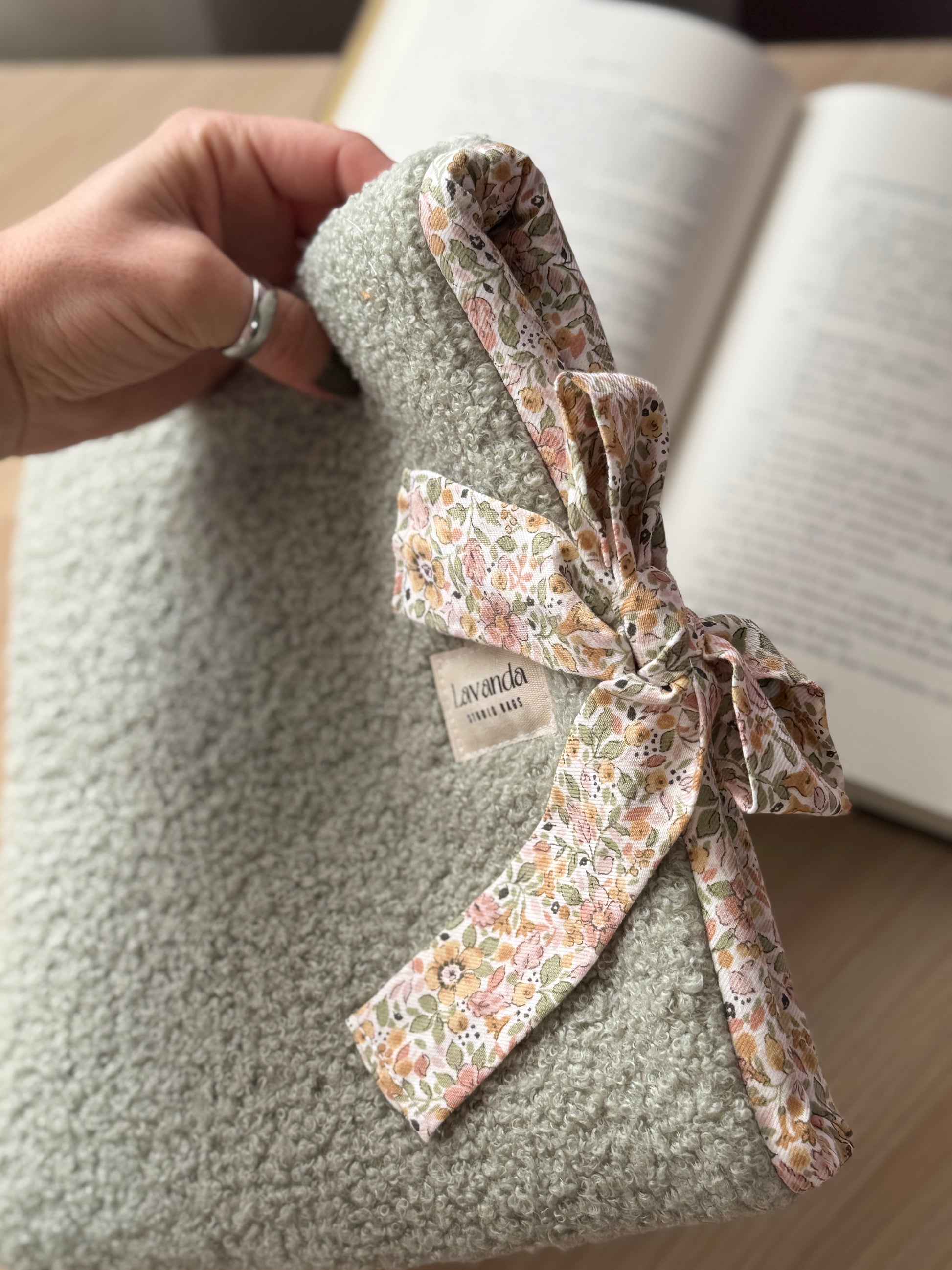 book cover with floral fabric inside. Medium size available